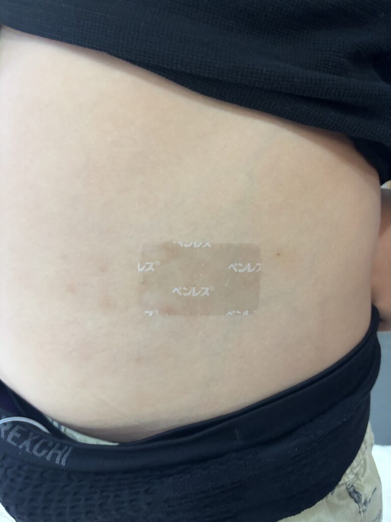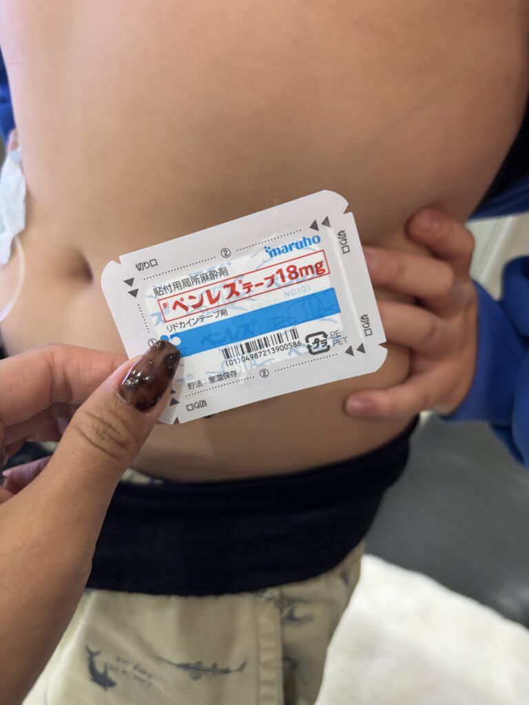 痛みをやわらげるために**麻酔テープ(ペンレステープ)**を使っています。